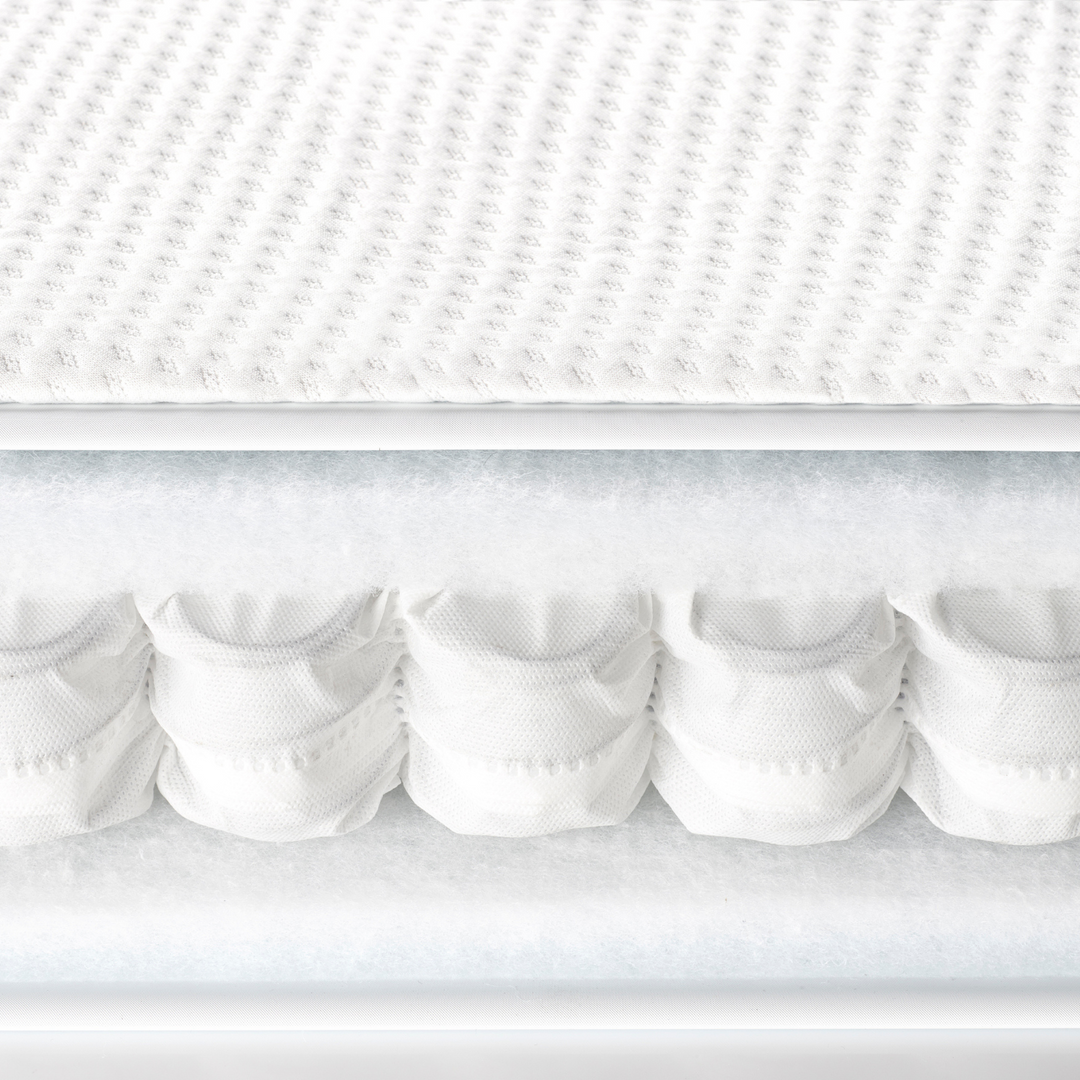 The pocket-sprung system provides responsive comfort by allowing each spring to move independently. This adaptability offers targeted support as your baby grows and changes, helping to maintain a comfortable sleeping environment.