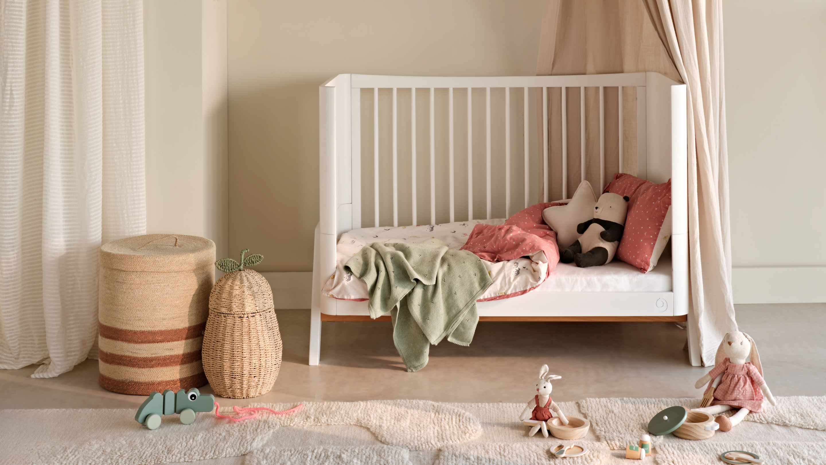 The solid wood construction of the Hera Cot guarantees that you can convert it back to the newborn setting and start over again from the First Bed if you need to.