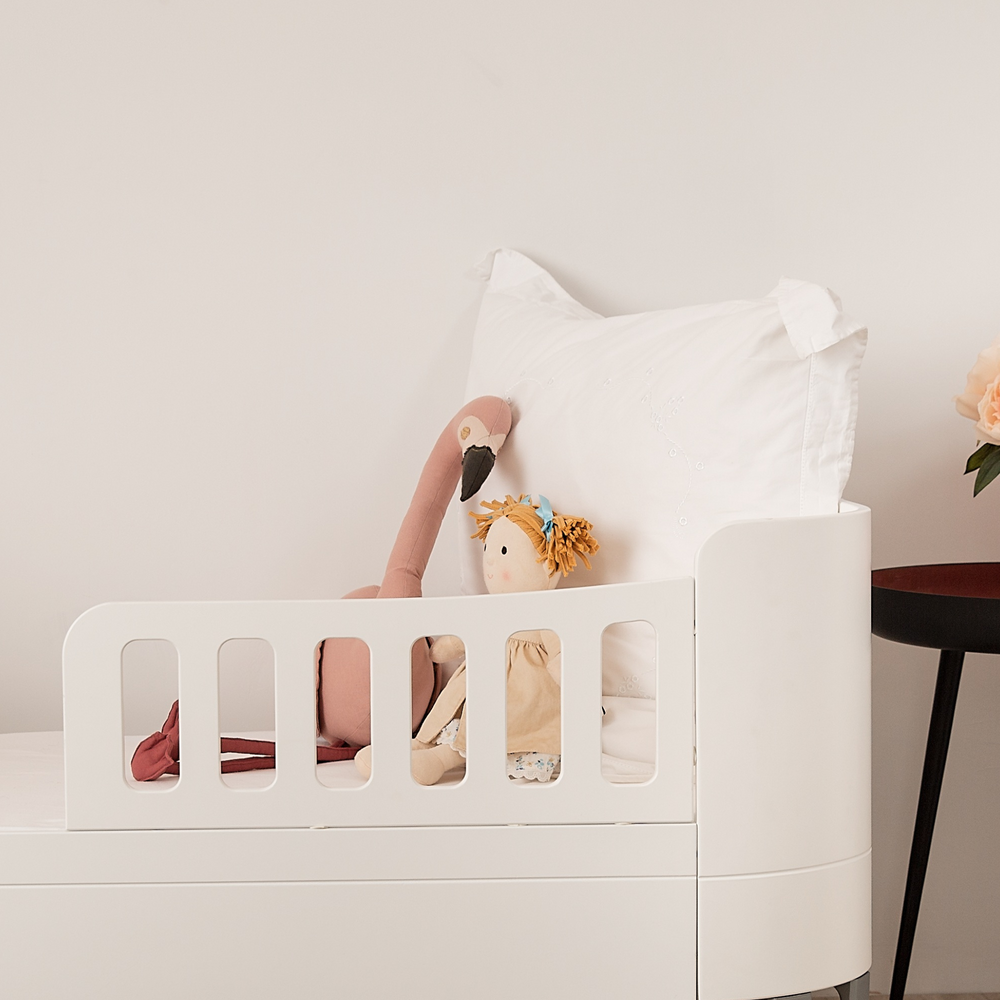 La cama de la cuna Serena evoluciona en perfecta simetría con su bebé desde el nacimiento de hasta 5 años.
