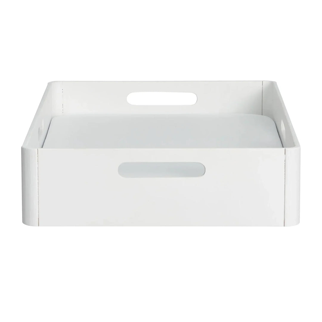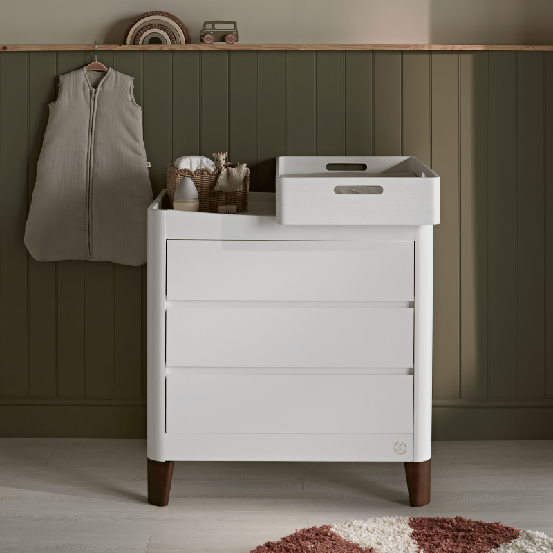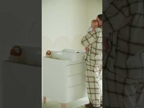 Solución ideal de cambio de pañal para un vivero más pequeño. Mantenga todos los artículos para bebés perfectamente organizados.