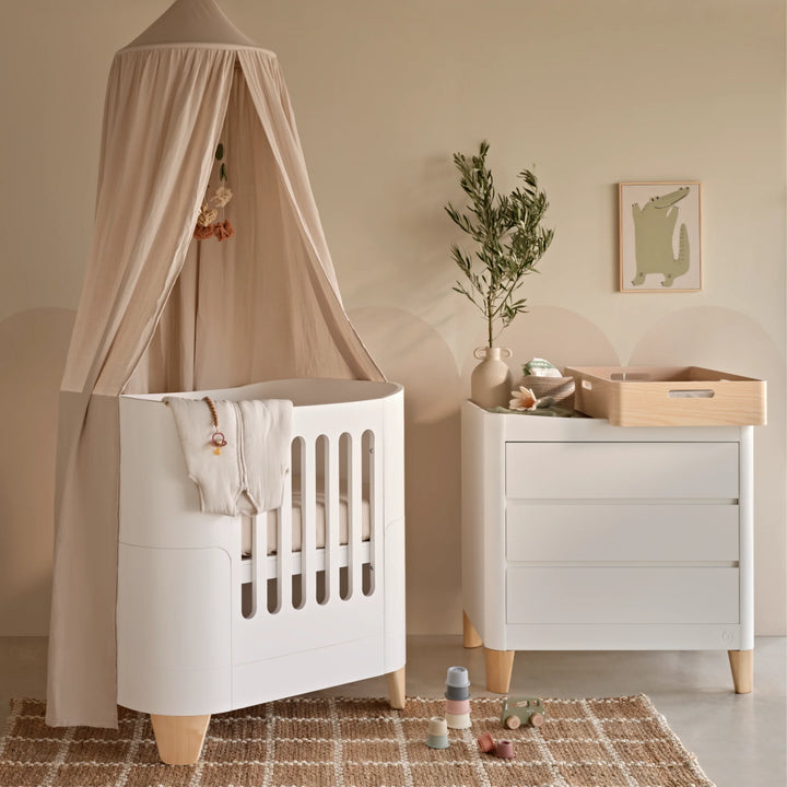 La estación cambiante se adapta a la cama de Hera Cot de manera perfecta y segura, lo que hace que sea fácil tomar una cama fuera de la cama.